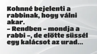 Vicc: Kohnné bejelenti a rabbinak, hogy válni akar. – Rendben – mondja…