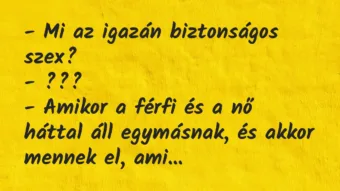 Vicc: – Mi az igazán biztonságos szex? – ??? – Amikor a férfi és a…