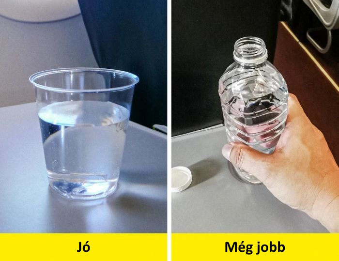 Egy utaskísérő osztotta meg a közösségi médiában, hogy a repülőgépen tárolt víztartályokat nem mossák el olyan gyakran, mint kellene. Ezért azt javasolja, csakis lezárt pohárból vagy palackból fogyasszuk az italokat, a vizet, az üdítőt és a gyümölcsleveket is. Tartózkodjunk a víztartályban tárolt víz fogyasztásától, kávé és tea esetén is.