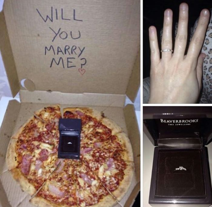 (8) Gyűrűt rejteni a pizza dobozában, legalábbis ami a fényt illeti, a sajt csillogott a legjobban. Az indítvány nemet kapott, viszont legalább a kaja finom volt.
