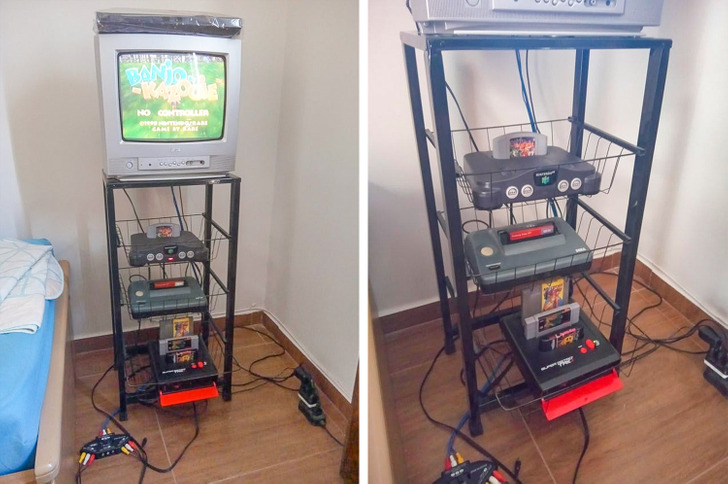 Az ügyes kezek gyorsan átalakíthatják a gyümölcstartót TV állvánnyá!