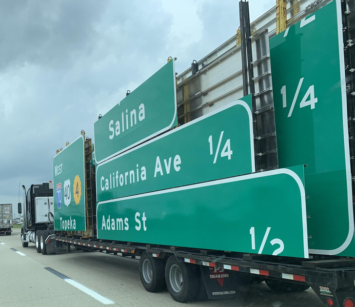 Ez a teherautó az autópályákon látható táblákat szállítja.