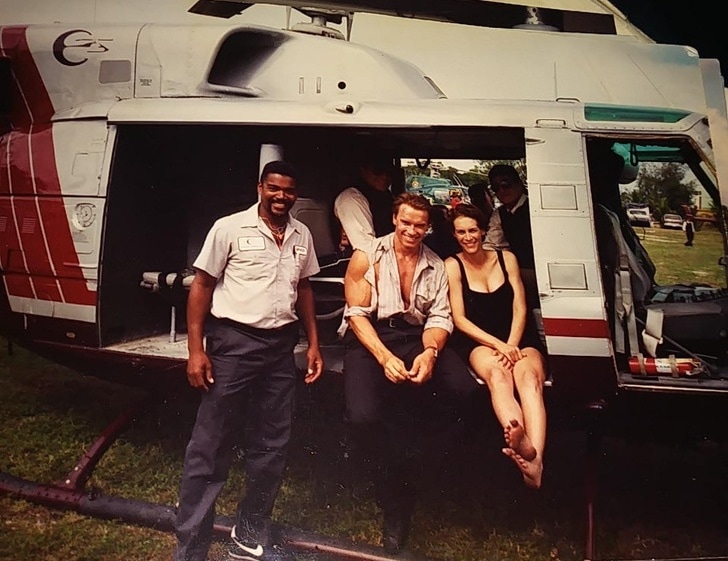 „A mostohaapám végezte az összes repülést Jamie Lee Curtis számára a Két tűz között c. filmben. Ő itt együtt Arnold Schwarzeneggerrel és Jamie Lee Curtis-szel.