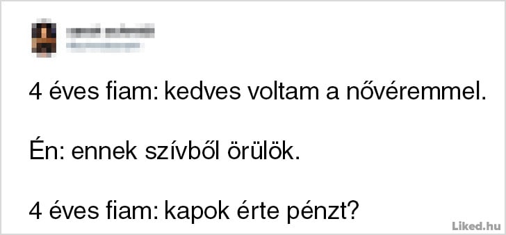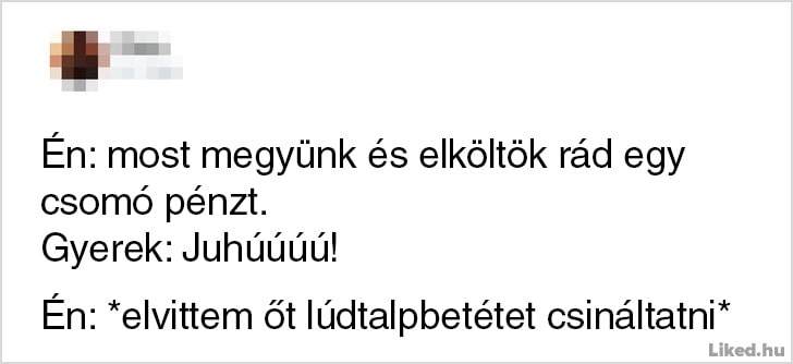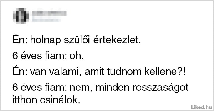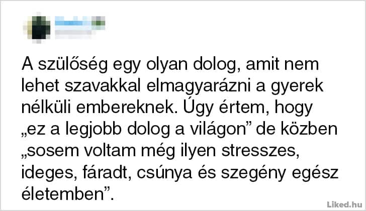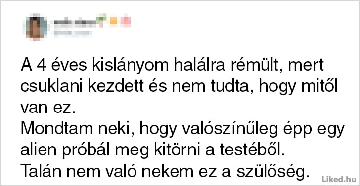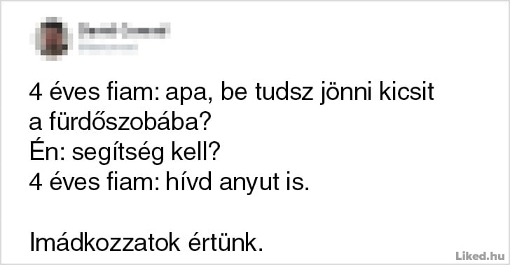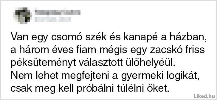 Onnan tudod, hogy jól végzed a szülői feladataidat, hogy egy csepp időd sincsen a munkádra, a pihenésre, vagy csak úgy szimplán levegőt venni. Bármennyire is a világ legtermészetesebb dolga azonban anyának vagy apának lenni, egyben a világ legnehezebb feladata is egyben, melyhez néha muszáj egy kicsit humorosan hozzáállnunk, hogy ne őrüljünk bele a mindennapok szülte stresszhelyzetekbe. Az alábbi emberek is ezt tették: ők épp az interneten keresztül osztották meg a gondolataikat és a gyerekneveléssel kapcsolatos abszurd kalandjaikat. Reméljük tetszeni fog a cikk. ?