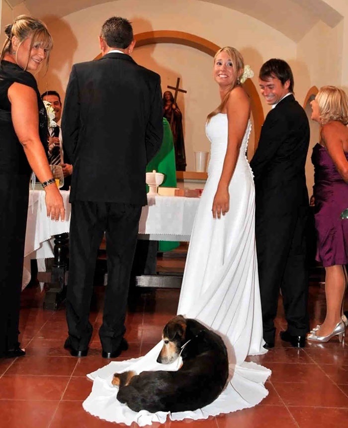 2. Kutyusunk is ott volt az esküvőn, aki a szertartás közben gondolt egyet, és az én esküvői ruhámon telepedett le, hogy kényelembe helyezze magát.