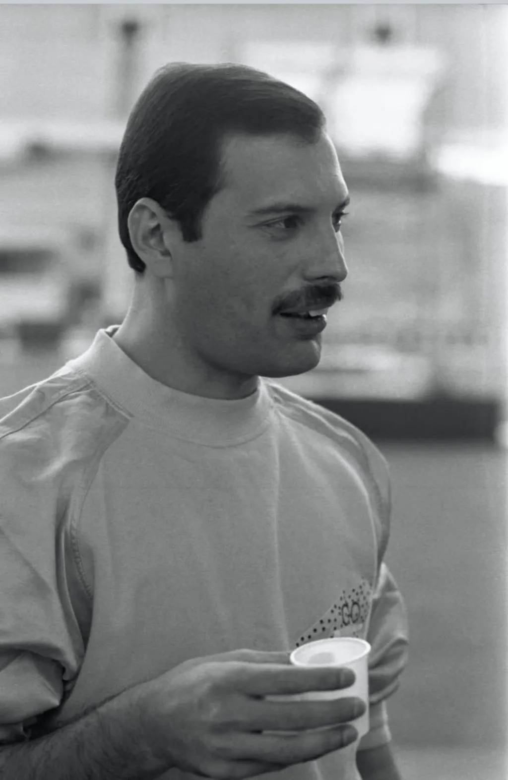 1986. Bp., Freddie Mercury pálinkával a Népstadionban.