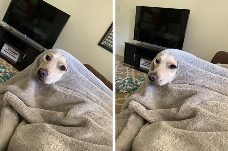 “A kutyám rágott egy lyukat a takarómon, majd ezt tette.”