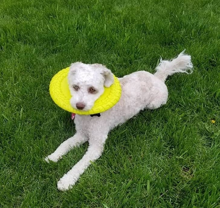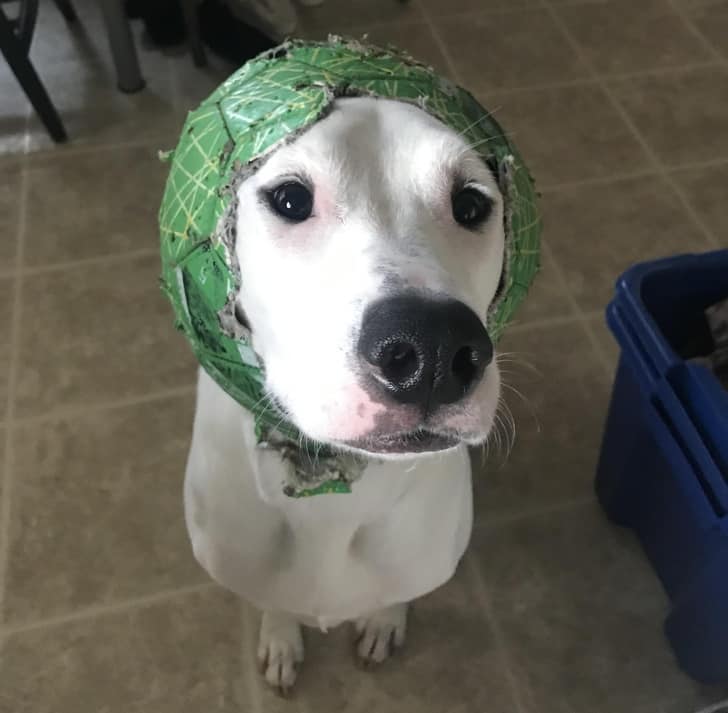 “A kutyám rágott egy lyukat a labdára, majd fejdíszként viselte.”