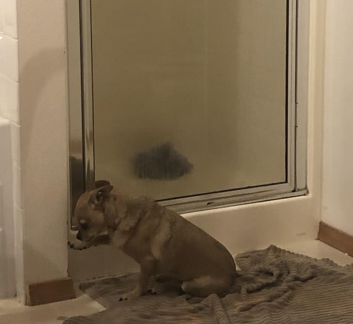 “A kutyám túl lusta ahhoz, hogy a fürdőszobán kívül őrt álljon, ezért a kedvenc játékát állította oda maga helyett.”