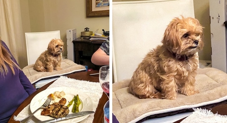 “Minden alkalommal, amikor vacsorázunk, a kutyám elkezd ’kiáltozni’, szóval kapott egy széket, hogy jobban közöttünk érezze magát.”