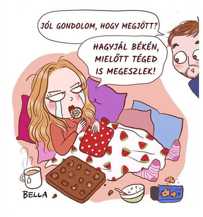 A férfiakhoz hasonlóan a nők életében is számos kihívással teli hétköznapi helyzet adódik. Ez a valóság adja az élet pikantériáját! Bella, a belga művésznő ezen a viszonylagán jól építkezett, amikor létrehozta a következő illusztrációkat. Saját életének momentumait ábrázolta oly módon, hogy a legtöbb nő azonosulni tud vele, főleg párjaik.