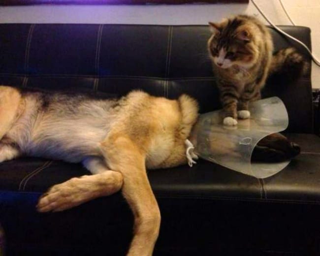 Úgy látszik, a kutyáknak mániájuk ráülni a cicákra.