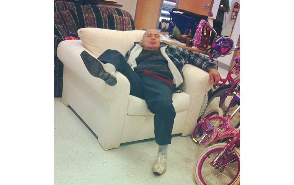 A férfiak képesek könnyedén elaludni egy kényelmes puffon, míg kedvesük próbafülkében ruhát próbál.