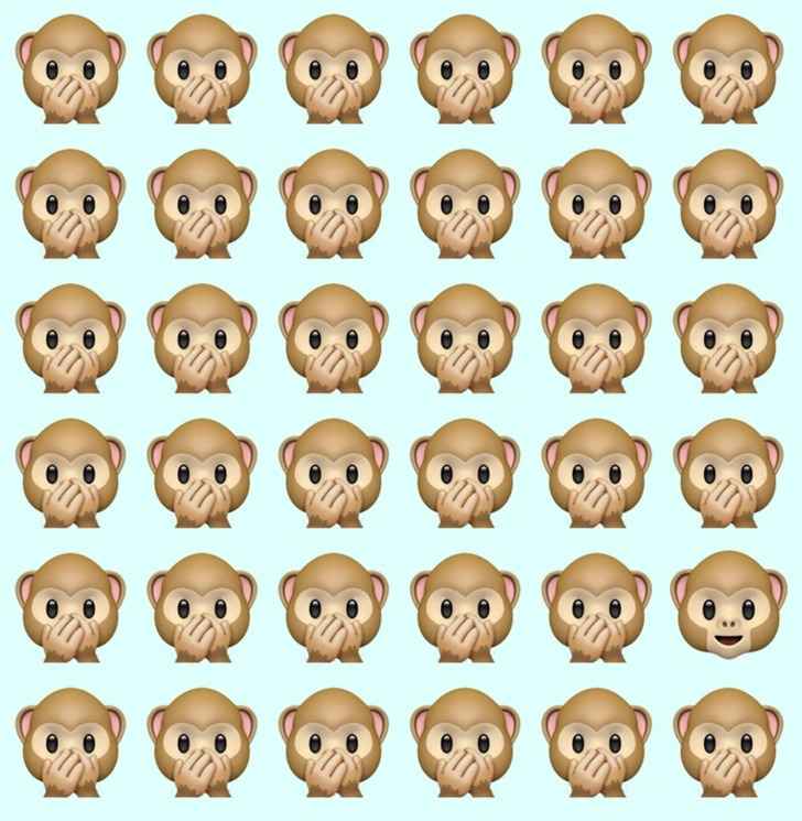 Az alábbi illusztráció majmos hangulatjeleket ábrázol, amik eltakarják a szájukat – de van ám közöttük egy, amelyik kicsit különbözik a többitől. Állítsd be a stoppert három másodpercre, és irány a kép! Gondosan nézd végig a majmokat.