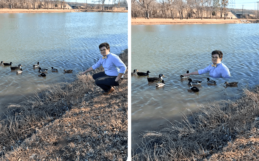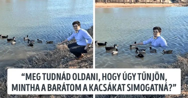 „Meg tudnád oldani, hogy úgy tűnjön, mintha a barátom a kacsákat simogatná? Nagyon örülne neki!”