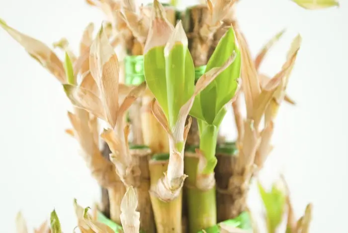 Ha a szerencsebambusz levelei barnának tűnnek, ez valószínűleg a száraz levegő vagy a szennyezett víz eredménye. Növeljük meg a levegő páratartalmát a növény környékén, rendszeres permetezés segítségével.