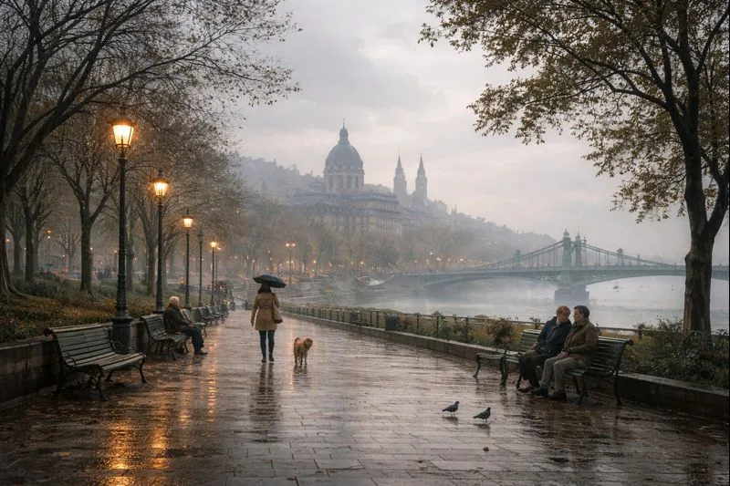 A budapest időjárás december 20-án változékony, de alapvetően nyugodt képet mutat. A hajnali órákban 4 fok körüli minimum várható, délután pedig 7 fokig emelkedik a hőmérséklet. A felhőzet egész nap megmarad, zápor csak elvétve fordulhat elő. A belvárosi sétákhoz nem ideális, de kifejezetten kellemetlen időre sem kell számítani.