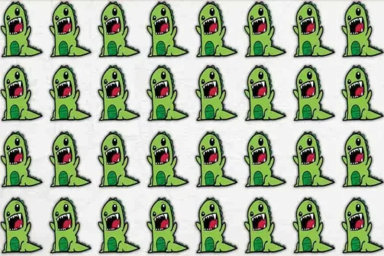 Ezen a képen aranyos kis zöld szörnyeket látsz, de van köztük egy, amelyik kicsikét különbözik a többitől. Első pillantásra nem könnyű észrevenni, de négy másodperc alatt kell megoldani a feladatot. Minél gyorsabban találod meg a megoldást, annál figyelmesebb vagy.