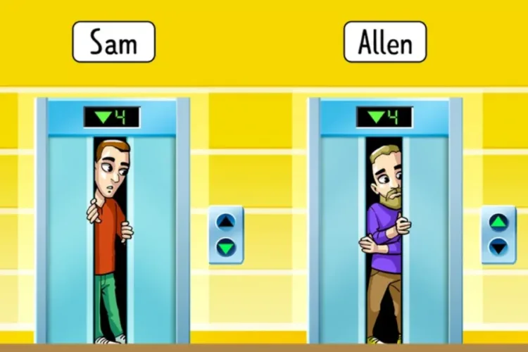 Két liftet látunk egymás mellett, benne ként férfivel. Sam le szeretne menni az első emeletre, Allen pedig a nyolcadik emeleti szobájába tart. Valamelyikük azonban nem túl okos, és rossz liftbe próbál beszállni. Melyikük lehet az?