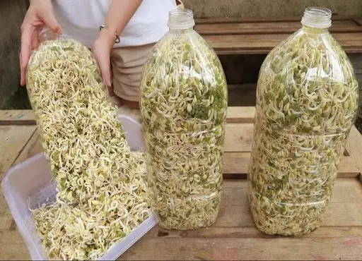 A palackok tetejét helyezzük vissza a helyére, vagy használjunk helyette műanyag fóliát, rögzítsük azokat gumiszalaggal. A palackokat helyezzük el sötét, hűvös helyen. Fedjük le őket egy tiszta, nedves konyhai törölközővel, így biztosítva a csírázás ideális körülményeit.