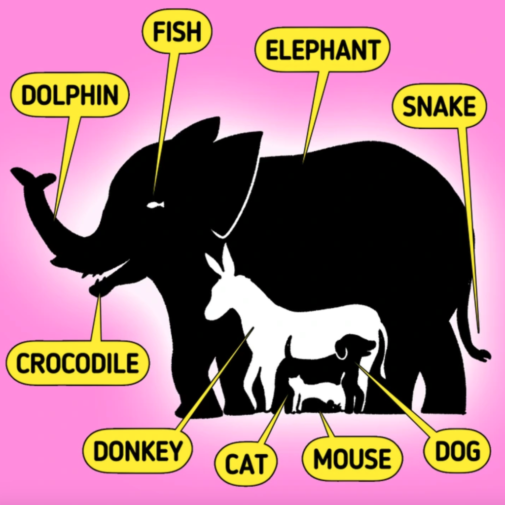 Az alábbi képen állatok árnyalakjait láthatjuk, ezekből kell következtetnünk arra, hogy vajon hány állat „állhatott össze” a képen – ez azonban korántsem olyan egyszerű, mint elsőre gondolnánk.
