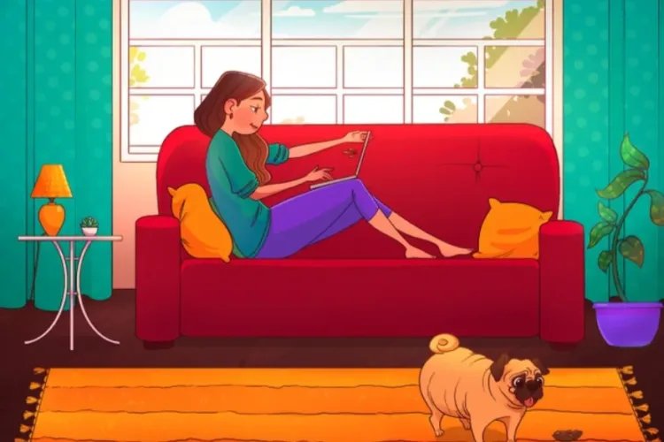 Ezúttal az a feladat, hogy megtaláljuk, mi a hiba a lenti képen. Egy nőt látunk, ahogy a kényelmes kanapéján ül, a lábán a laptopjával. A szoba rendkívül otthonos, a szobának nagy ablakai vannak, és a nőnek egy háziállata is van, egy cuki kutya. Minden normálisnak tűnik – de ez csak a látszat. Valami nagyon nem stimmel ezzel a képpel. A leggyorsabbaknak 7 másodperc is elég, hogy kiszúrják a hibát a képen. Nekünk sikerülni fog?