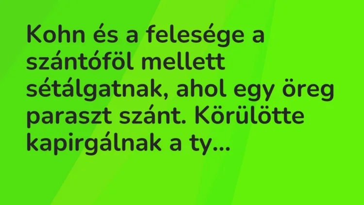 Kohn és a felesége a szántóföl mellett sétálgatnak, ahol egy öreg paraszt szánt.