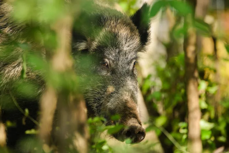 A vaddisznó az orrával túrja fel a talajt táplálék után kutatva.