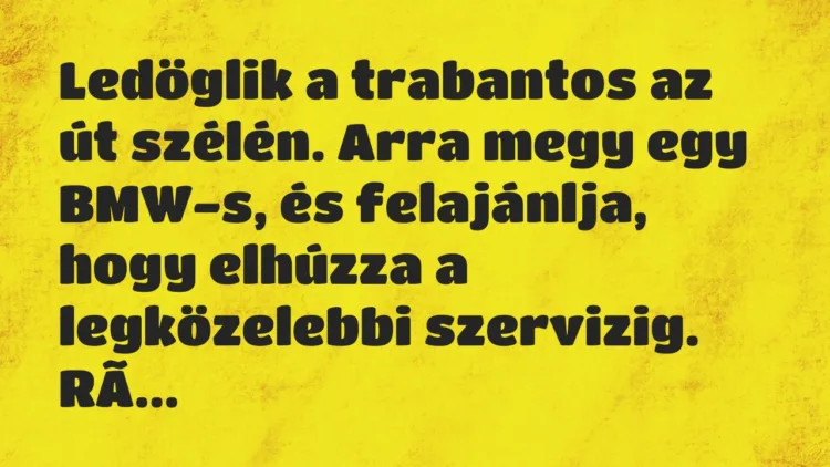 Arra megy egy BMW-s, és felajánlja, hogy elhúzza a legközelebbi szervizig.