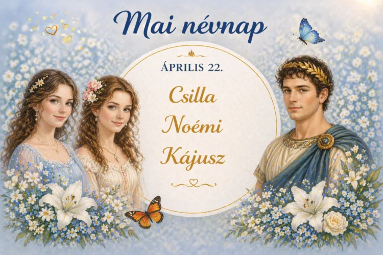 A mai névnap három eltérő hangulatú, mégis szépen csengő nevet hoz a középpontba: a Csilla, Noémi és Kájusz nevűeket ünnepeljük. Ha felmerül benned, milyen névnap van ma, vagy kinek illik egy kedves üzenetet küldeni, a válasz egyszerű: névnap ma ezekhez a nevekhez kötődik. Egy rövid köszöntés, egy kedves szó vagy akár egy apró figyelmesség is elég ahhoz, hogy az ünnepelt napja egy kicsit fényesebb legyen.