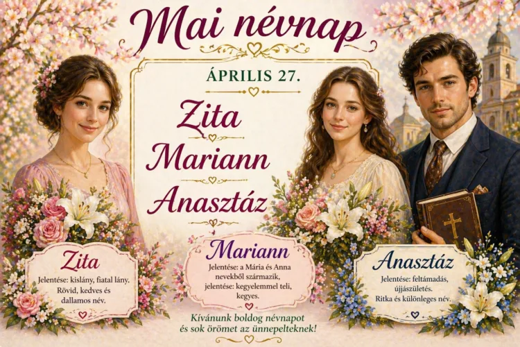 A mai névnap három különböző hangulatú, mégis szépen csengő nevet állít a középpontba: a Zita, Mariann és Anasztáz nevűeket ünnepeljük. Ha felmerül benned, milyen névnap van ma, vagy kinek illik egy kedves üzenetet küldeni, a válasz egyszerű: névnap ma ezekhez a nevekhez kötődik. Egy apró figyelmesség, egy rövid üzenet vagy egy telefonhívás is elég ahhoz, hogy az ünnepelt napja egy kicsit melegebb, személyesebb legyen.