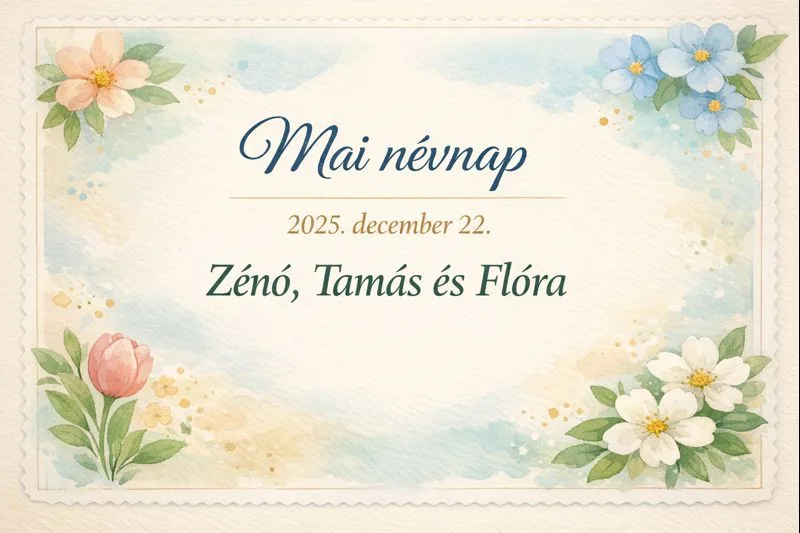 December 22-én a Mai névnap középpontjában három jól ismert keresztnév áll: a Zénó, a Tamás és a Flóra. Ha felmerül a kérdés, milyen névnap van ma, vagy kinek illik ma egy kedves üzenetet küldeni, ez a nap sok családban és baráti körben ad okot a megemlékezésre. A névnap ma nemcsak egy dátum a naptárban, hanem alkalom arra is, hogy jobban megismerjük a mögötte álló neveket, eredetüket, jelentésüket és kulturális hátterüket.