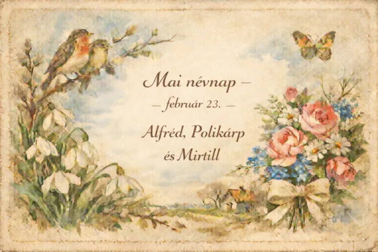 Február 23-án az Alfréd, Polikárp és Mirtill nevek szerepelnek a magyar naptárban. A mai névnap sokak számára egy rövid üzenetet, egy telefonhívást vagy egy kedves figyelmességet jelent azok felé, akik ezt a nevet viselik. A három név különböző korszakok és hagyományok emlékét őrzi, így mindegyik sajátos hangulatot hordoz.