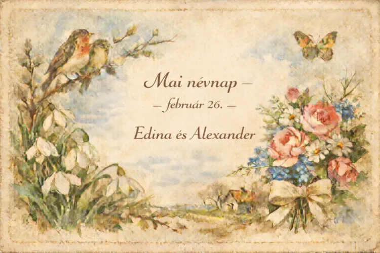 Február 26-án az Edina és az Alexander nevek szerepelnek a magyar naptárban. A mai névnap sok családban egy kedves üzenetet, egy rövid telefonhívást vagy egy személyes jókívánságot jelent azok felé, akik ezt a nevet viselik. A két név eltérő eredetű és hangulatú, mégis közös bennük, hogy mindkettő elegáns és nemzetközi csengésű.