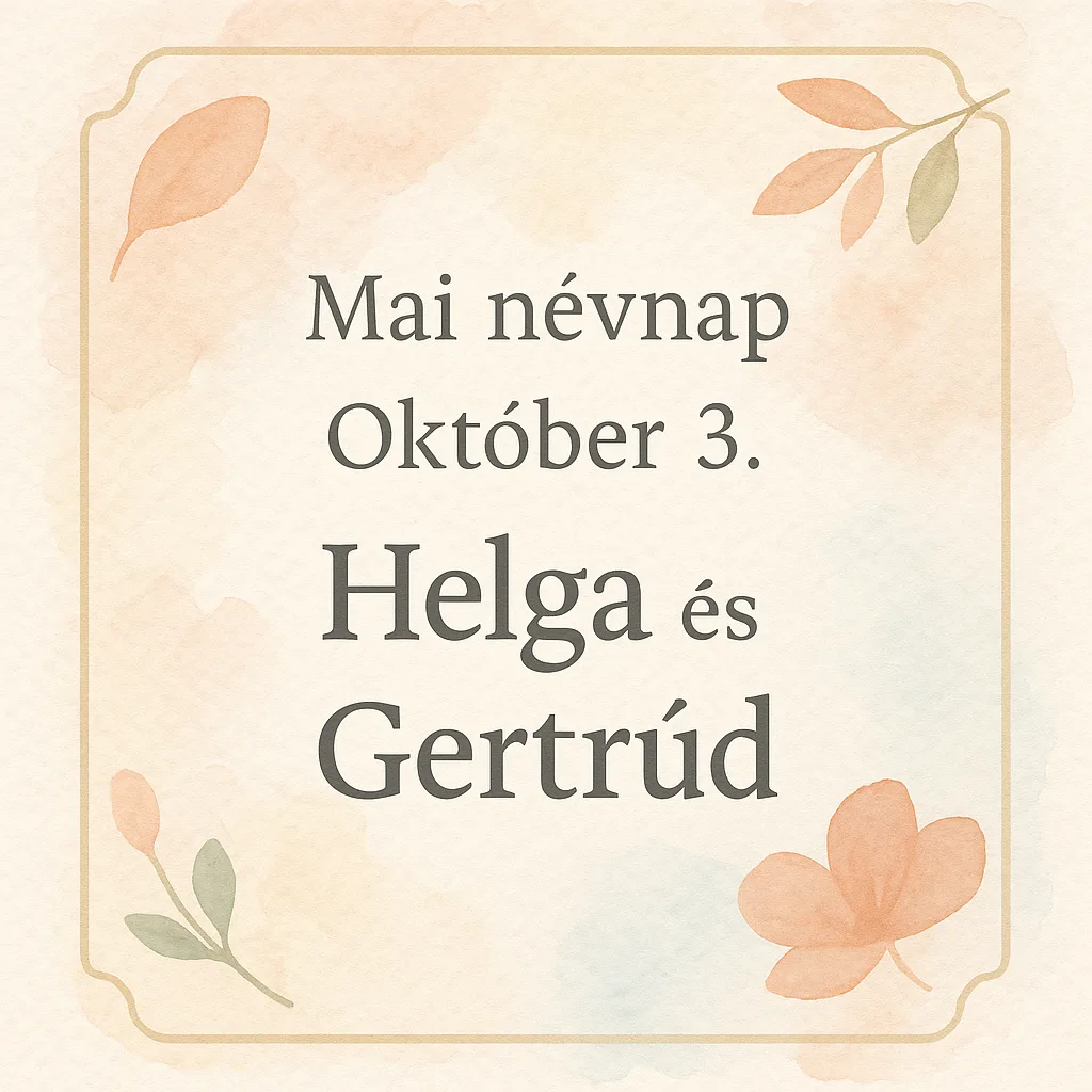 Ha kíváncsi vagy, milyen névnap van ma, a válasz: október 3-án Helga és Gertrúd ünneplik a névnapjukat, mellettük pedig Heliodor, Hiador és Ignác is ehhez a naphoz kötődik. A mai névnap különlegessége, hogy egyszerre találkozhatunk ősi germán eredetű női nevekkel és klasszikus férfinevekkel is.