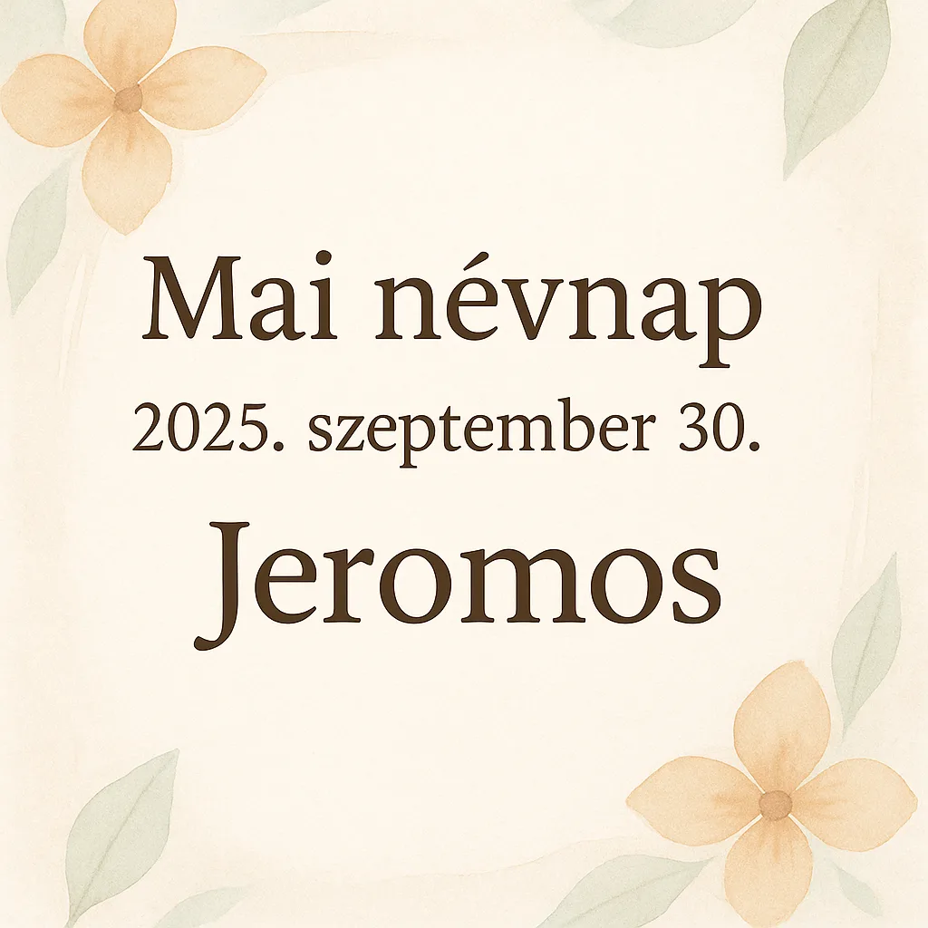 A mai névnap szeptember 30-án a Jeromos névhez kapcsolódik. Tudnod kell, hogy ez a régi, méltóságteljes keresztnév áll a középpontban. A névnap ma sok család számára alkalmat ad az emlékezésre és az ünneplésre, legyen szó akár nagyszülőkről, akár fiatalabb viselőkről.