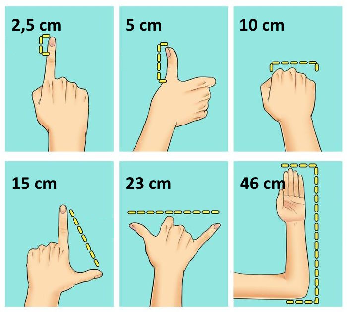 10 cm: a kézfejed szélessége az ujjak alsó ízületeinél (a hüvelykujj nélkül);