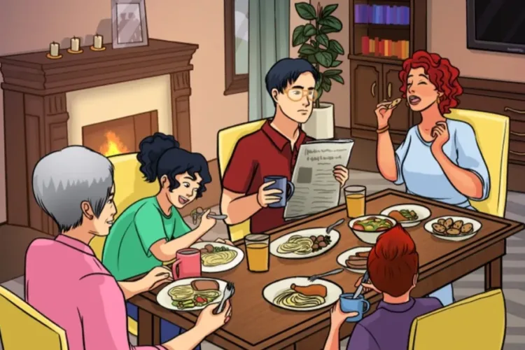 Ezúttal az a feladat, hogy megtaláljuk, mi a hiba a lenti képen. Egy békés család vacsorát látunk: a családtagok az asztalnál ülnek és kedélyesen elfogyasztják a vacsorájukat. Mindeközben a kandallóban tűz lobog, minden meghittnek látszik. Valami azonban nagyon nem stimmel ezzel képpel. Mivel a fejtörő nem kifejezetten nehéz, ezért az idő sem sok, ami alatt meg kell találnunk a megoldást.