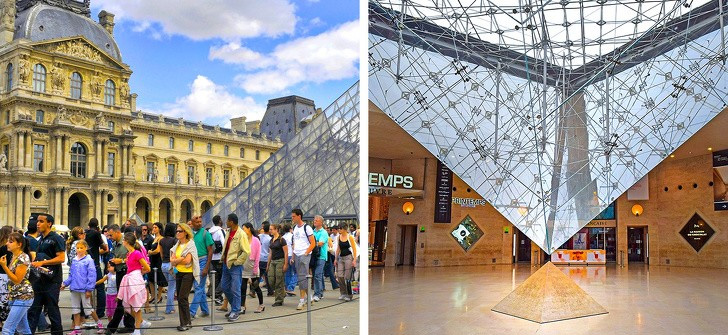 A Louvre a város második leglátogatottabb helyszíne. Ha nem vásárolsz online jegyet előre, akkor készülj fel arra, hogy órákig kell sorban állnod, mire végre bejutsz a múzeumba.