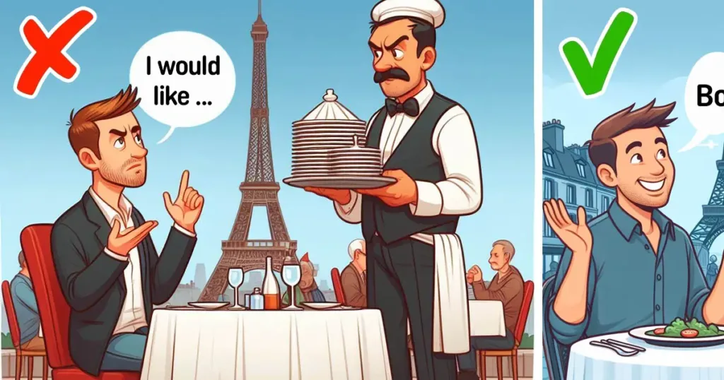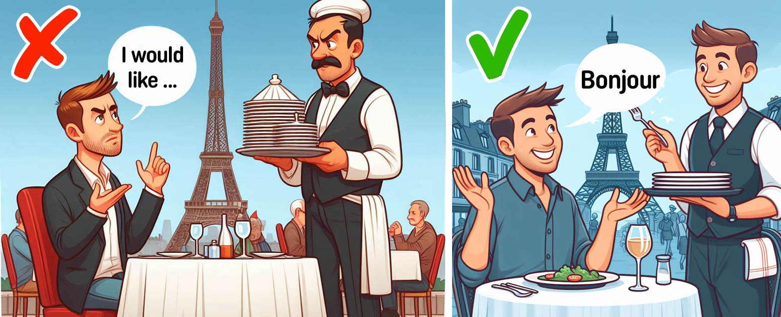 Természetesen nem a képesség hiányzik, hanem a hajlandóság. Sok francia alapvetően nem szeret más nyelven beszélni, amit a büszkeség és a francia kultúra iránti tisztelet motivál. Ezért könnyen lehet, hogy egy éttermi ebéd vagy vacsorázás komplikálttá válhat, ha a pincérrel nem sikerül közös nyelvet találni.