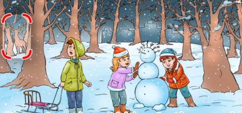 Helyes válasz: A fiú egy szarvast pillantott meg a háttérben.