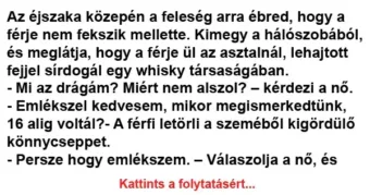 Az éjszaka közepén a feleség arra ébred, hogy a férje nem fekszik mellette. Kimegy a hálószobából, és meglátja, hogy a férje ül az asztalnál, lehajtott fejjel sírdogál egy…