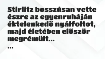 Vicc: Stirlitz bosszúsan vette észre az egyenruháján éktelenkedő nyálfoltot,…