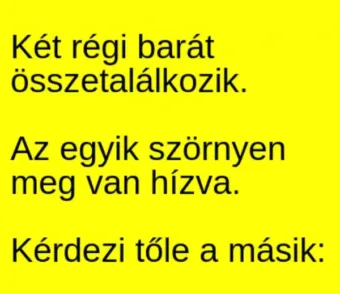 Megosztom a Facebookon: Katt a gombra! Két régi barát összetalálkozik. Az egyik szörnyen meg van hízva. Kérdezi tőle a másik: – Janikám, te egy cingár ember voltál, mielőtt…