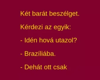 Megosztom a Facebookon: Katt a gombra! Két barát beszélget. Kérdezi az egyik: – Idén hová utazol? – Brazíliába. – Dehát ott csak focisták és ****vák vannak! – A feleségem már 10…