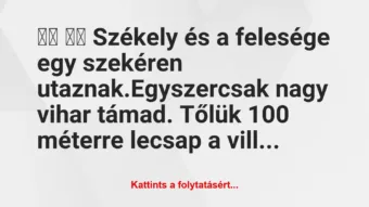 Székely és a felesége egy szekéren utaznak.Egyszercsak nagy vihar támad. Tőlük 100 méterre lecsap a villám. Azt mondjaa székely:- No-no.Megint lecsap a villám tőlük 50 méterre.…