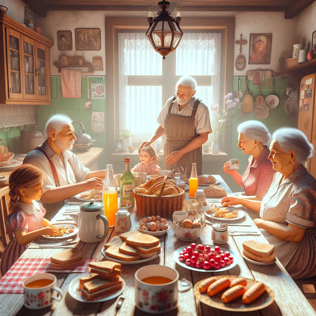 A nagyi már hajnalban belevágott a főzésbe, és ilyenkor mindig úgy tűnt, mintha az idő nem is létezne. Az illatok szinte beszéltek – a húsleves gőze fűszeres, egyszerre bódító és otthonos; a sült hús ropogós kérge a fogaim között roppant, míg a gyümölcsös piskóta ízét még a legmesszebb élő unokáknak is felidézte. Mindannyian izgatottak voltunk, ki mikor érkezik, és ki hoz magával mit.