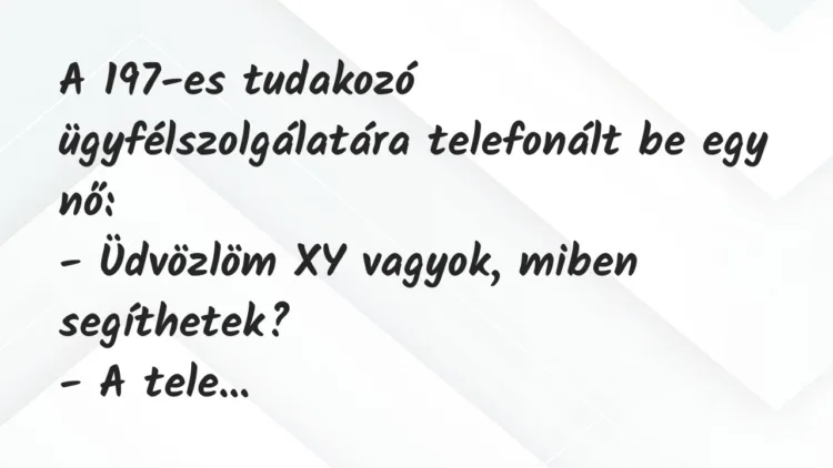 A 197-es tudakozó ügyfélszolgálatára telefonált be egy nő: