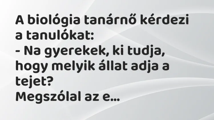 – Na gyerekek, ki tudja, hogy melyik állat adja a tejet?