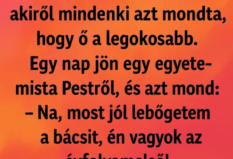 A faluban élt egy idős bácsi, akiről mindenki azt mondta, hogy ő a legokosabb.Egy nap jön egy egyetemista Pestről, és azt mondja: